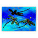 Prachtige metalen libellen op een elektrische blauwe achtergrond.