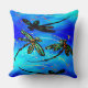 Prachtige groene en gouden libellen vliegen op een elektrische blauwe achtergrond.