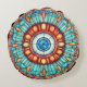 Het is een mooi kussen met het levenswiel er op. Je ziet dat het een afbeelding is van een tempeldeur of wand, het hout is herkenbaar. Het past geweldig in ons interieur: een beetje Zen, maar wel kleurig. Mooie kleuren, zoals op de afbeelding.