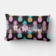Een dramatisch anananassenontwerp op een zwarte achtergrond, het contrast van deze kleuren is echt geweldig. Met paarse, gele en blauwe ananassen op een zwarte achtergrond kunt u jouw naam aanpassen in een wit cursief lettertype. Pas vandaag uw kussen aan! Kunstwerk gemaakt door: AMBillustraties http://www.etsy.com/shop/AMBillustrations/