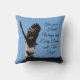 Dit kussen heeft een spectaculaire foto van een roodstaarthavik op de top van een dak, met zijn vleugels hoog boven zijn hoofd. Het inspirerend citaat luidt: Geef je hartvleugels, en Elke droom zal vliegen.