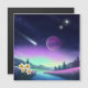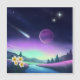 Bring a touch of the cosmos into your everyday life with this dreamy fantasy landscape. A glowing purple planet and a radiant shooting star shine above a serene river, surrounded by lavender fields and daffodils. This artwork blends the beauty of nature with the wonder of the universe, creating a peaceful yet magical atmosphere. Perfect for T-shirts, phone cases, home décor, and accessories, this design inspires tranquility, imagination, and stargazing dreams.