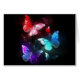 Drie lichtgevende, rode, paarse, groene, textuurrijke, nachtvlinders op een zwarte lichtgevende achtergrond.