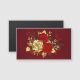 De samenstelling van twee op ambachtelijke wijze geverfde rode rozen en één gouden roos, versierd met goud, juwelen bladeren op een getextureerde achtergrond.