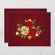 De samenstelling van twee op ambachtelijke wijze geverfde rode rozen en één gouden roos, versierd met goud, juwelen bladeren op een getextureerde achtergrond.
