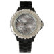 De neushoorn van de zwarte enamel van vrouwen kijkt met een afbeelding van een mengsel van cheetah, luipaard en tijgerprints. Zie overeenkomende ronde charm, ronde basisknoppen sleutelhanger en rond ketting. Zie het volledige collectie Dit & dat van het Horloge in de sectie van ACCESSOIRES.