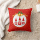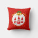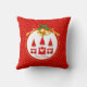 Drie kerstgnomen, gekleed in rode, gouden klokken en gouden confetti op Red Pillow.