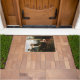 Drie kinderen plukken wilde bessen in een bos deurmat