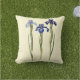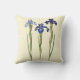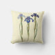 Drie elegante stengels van botanisch geïllustreerde paarse iris van de voor- en achterkant van een crèmekleurig bleek geel vierkant type A Cotton Accent Pillow.