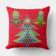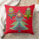 Deze Three Holiday Trees gooien kussen met een rode achtergrond zal vakantie juichen aan uw decor! Dit ontwerp is beschikbaar in meerdere producten, perfect voor uw cadeau-geven behoeften!