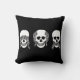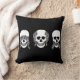 Drie verstandige schedels, zie, hoor, spreek geen kwaad, grappige Halloween kussen, zwarte kussen voor Halloween party, huisdecoratie