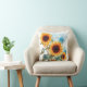 Drie waterverf zonnebloemen zijn als zonneschijn tegen een levendige blauwe lucht.