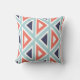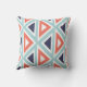 blauw, bleek blauw, koraal en witte driehoek geometrisch patroon werpen kussen.