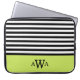Drievoudige Letter Monogram Groen Zwart Witte Stri Laptop Sleeve