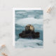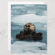 Gedrooid met een afbeelding van een zee otter (Enhydra lutris) die op zijn rug zweeft omringd door ijsbergen in de prins William Sound van Alaska. Door Ted Raynor