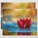 Een prachtig gezichtsmasker is voorzien van een foto van rode lotusbloem die op water drijft en een gevoel van kalmte Een perfecte achtergrond voor uw vakantiefoto's en mementos