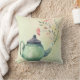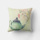 De afbeelding van de waterverf is voorzien van grote groene theepot met veren van bessen en takken van bladeren op de abstracte wasachtergrond