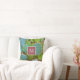 Succulent monogram gooit kussen met een afbeelding van een prik gevuld met limoen en blauwgroen groene kleuren. Met een roze en witte rand, kunt u met een wit initiaal personaliseren. Ideaal voor het toevoegen van een woestijnbotanische aanraking aan uw thuisdecor.