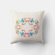 Een zacht en helder mandala-ontwerp is te zien in gedempt rood, blauw, groen en bordeauxrood op een lichtbeige achtergrond. Aan de ene kant van het kussen, de inspirerend boodschap aan "Droom", of dit nu toekomstige doelen en visioenen betekent - of ontspannen in een rustgevende slaap. Aan de andere kant is het ontwerp alleen, nu kleiner, ook op een roze achtergrond.