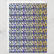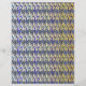 Gestileerd en grillig handgetekend pauwenveerpatroon in blauw en goud.