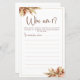 Omarm de rustieke charme van de herfst met onze Dry Pampas Grass Who Am I Game Kaart, ideaal voor boho-vrijgezellenfeesten en themabijeenkomsten. Deze grillige kaart is versierd met gouden accenten en legt de essentie van bohemien elegantie vast, waardoor een vleugje natuurlijke schoonheid aan elk evenement wordt toegevoegd. Laat de zachte, gedempte tinten van pampasgras de toon zetten voor een heerlijk gisspel dat gasten en creëer gekoesterde herinneringen zal betoveren.