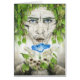 Waterverf schilderij van een berkendroger met intense ogen die een ochtendglorie vasthouden