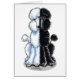 Op Andie's originele inkt en gekleurde potlood afbeelding van witte en zwarte standaardpuree die samen geknuffeld zijn. Geweldig geschenk voor Poodle-liefhebbers.