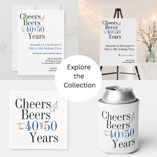Dit is een cool en modern, gezamenlijk verjaardagsfeestontwerp met een juichen en bierthema. Het is een eenvoudig, minimaal ontwerp, in klassiek zwart-wit, met accenten van blauw gekleurde typografie. Perfect voor een cool en leuk, dubbel feest of verjaardagsfeest. Dit ontwerp is volledig aanpasbaar, gebruik gewoon de knop personaliseren om de pagina of de rest van de tekst te wijzigen of gebruik de bewerkingstool om de kleur of het lettertype te wijzigen. Als u hulp nodig hebt bij personalisatie, bijpassende producten of voor een aangepast ontwerp, neem dan contact met me op via zazzle chat of e-mail: ursuladawnmoon@gmail.com