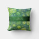 Voeg een vleugje elegantie en grilligheid toe aan uw ruimte met dit unieke accentkussen. Aan de voorzijde komt een charmant waterverf inktpatroon van ronde cirkels in groen- en blauwtinten samen met een fluweelachtige groene streep met uw familienaam of monogram in een lichtgroen lettertype. Draai het om om dezelfde luxueuze groene fluwelen achtergrond met strepen van het waterverf ontwerp te vinden. Het is twee stijlen in één - een heerlijke mix van verfijning en artistieke, allemaal in een enkel kussen gooien. Hobinishop