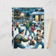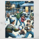 Vakantie winter thema plakboek papier. Een schattige winterscène gedaan in een stripboekstijl met kinder sneeuwballengevechten in de voortuin. Hoop met deze kunst een nostalgisch gevoel op te wekken.