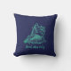Dubbelzijdig strandesthetisch gooien kussens met prachtige shell contour en gemakkelijk bewerkbare aangepaste tekst op witte achtergrond aan één kant, en hetzelfde patroon met turkooiskleur op marinekleurachtergrond bij LakeIsland.