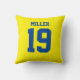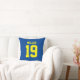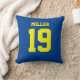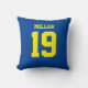 Voeg een naam en nummer(s) toe om dit aangepaste dubbelzijdige blauw-gele sportjersey geïnspireerd accentkussen te personaliseren. Het is een uitstekend cadeau voor een sportfan of sporter. De opties voor het wijzigen van de kleur en de tekengrootte zijn beschikbaar.