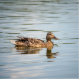 Een Amerikaanse zwarte eend zwemt in een vijver op een zonnige zomerdag
