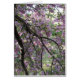 Een zwemende eend in een vijver verschijnt via een opening in kersenbloesems.