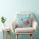 Schattigee duif verkent de ruimte omdat hij geen grenzen accepteert. Inspirerend en bemoedigend gooi kussen in blauw en roze.