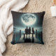 Silhouet van een koppel met hun Duitse herdershond zittend op een meerdok kijkend naar de volle maan.