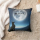 Een Duitse herdershond kijkt omhoog naar een volle maan waar de slee en het rendier van de kerstman worden afgezet tegen een heldere volle maan