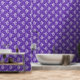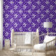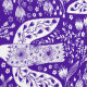 Duiven en bloemen vogelkunstpatroon in wit op paarse. Transformeer uw ruimte met dit charmante behang met vliegende vredesduiven en bloeiende wilde bloemen in een levendige volkskunststijl. Het ingewikkelde botanische patroon van vogels en bloemen voegt een vleugje eigenzinnigheid en warmte toe, perfect voor het creëren van een gezellige, uitnodigende sfeer in elke kamer. Eenvoudig te installeren en prachtig gedetailleerd, dit behang is een heerlijke manier om een unieke, artistieke touch aan uw huis te brengen. Originele versie door Nic Squirrell.