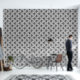 Duiven en bloemen vogelkunst patroon in zwart en wit. Transformeer uw ruimte met dit charmante behang met vliegende vredesduiven en bloeiende wilde bloemen in een levendige volkskunststijl. Het ingewikkelde botanische patroon van vogels en bloemen voegt een vleugje eigenzinnigheid en warmte toe, perfect voor het creëren van een gezellige, uitnodigende sfeer in elke kamer. Eenvoudig te installeren en prachtig gedetailleerd, dit behang is een heerlijke manier om een unieke, artistieke touch aan uw huis te brengen. Originele versie door Nic Squirrell.