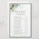 Moderne, elegante vrijgezellenfeest game "Raad eens wie" met groene groene groene groene botanische bladeren en eucalyptus, en grenst aan bleek eucalyptusblauw groen. Geef uw vragen een persoonlijk tintje in zacht-zwart, geaccentueerd met mooie moderne, met de hand geschreven kalligrafie. Deel van een gecoördineerde suite. De reeks van het uitzicht hier: https://www.zazzle.com/collections/elegant_eucalyptus_green_botanical_bridal_shower-119330045467288535 de ontwerper van het contact voor de aanpassing van producten. Copyright Anastasia Surridge voor Elegant Invites, alle rechten voorbehouden.