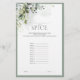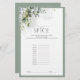 Moderne, elegante vrijgezellenfeest game "Name that Spice", met groene groene groene groene, groene botanische bladeren en eucalyptus, en gegrensd in bleke eucalyptusblauw grijs groen. Deel van een gecoördineerde suite. De reeks van het uitzicht hier: https://www.zazzle.com/collections/elegant_eucalyptus_green_botanical_bridal_shower-119330045467288535 de ontwerper van het contact voor de aanpassing van producten. Copyright Anastasia Surridge voor Elegant Invites, alle rechten voorbehouden.