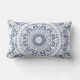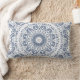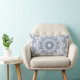 Dit bloemkussen heeft een stoffig blauw en wit bloemmotief. Ik creëerde het ontwerp in een transparante artistieke stijl. Uitzicht de details van het ontwerp om de doorzichtigheid van de bloemen te zien.