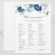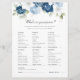 Dusty Blue Floral Vrijgezellenfeest spel. Creëer Een moderne Dusty Blue Floral Vrijgezellenfeest spelkaart met deze schattige sjabloon met prachtige bloemenbloei met een eenvoudige typografie. TIP: Bijpassende bruidssuite kaarten zoals RSVP, huwelijksprogramma's, banners, wandtapijt, cadeau labels, borden en andere bruiloft keepsakes en goodies zijn beschikbaar in het onderstaande collectie met dit ontwerp.