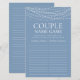 Deze mooie, stoffige blauwe lichtjes Het spelletje van de Couple Name Game vrijgezellenfeest is eenvoudig en charmerend - perfect voor elke douche. Dit leuke en gemakkelijke spel is zeker om veel gelach naar elk vrijgezellenfeest te brengen! Geef gewoon een vel aan elke gast (vergeet de pennen niet) en laat het plezier beginnen! Je zult verbaasd zijn over hoeveel lange woorden mensen bedenken met de namen van de bruid en de bruidegom. In seconden kun je zien hoe je gamepagina eruit zal zien. Selecteer deze Sjabloon gewoon personaliseren en typ in de naam van de bruid en de naam van de bruidegom.