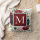 Dusty Blue met Burgundy Wine Floral Monogram Kussen