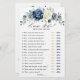 Stamblauw Vrijgezellenfeest spelblad Raad eens met elegante bouquet van blauw marinesurft, royal blue, white, gold, champagne iory, blush color color roos, ranunculus flower buds, sage green eucalyptus leaves en elegant waterverf bouquet. Neem contact met mij op voor hulp bij aanpassingen of als u een ander product nodig hebt met dit ontwerp.