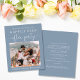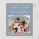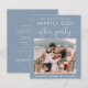 Begrotingsvriendelijk stoffige blauw, met uitzondering van de datum van een trouwreceptie na uw huwelijksreis of kleine privé bruiloft. De voorzijde kenmerkt uw foto van de trouwdag en "sparen de Datum voor Onze Gelukkig Ooit na Partij"in een mengeling van eenvoudige witte typografie en een chic wit manuscript met swashes. Onder uw foto, voeg uw voornamen en ontvangstdatum toe. Voor de achterkant, personaliseer uw bericht en voeg de partij of de ontvangst sparen de datumdetails en uw namen in een handtekening-als manuscript toe.