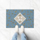 Dusty Blue Rustic Brown Leaves Family Monogramed Deurmat