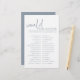 Verhoog je vrijgezellenfeest met de Dusty Blue & White Would She Rather Game - een eenvoudige, verfijnde twist op een klassiek partyspel. Dit stijlvolle spel brengt een vleugje elegantie aan uw vrijgezellenfeest feest. Met zijn strakke, minimalistische esthetiek vormt het een naadloze aanvulling op elk modern, chique vrijgezellenfeest. Maar laat je niet misleiden door de verfijnde look - dit spel zit vol met leuke, tot nadenken stemmende vragen die ervoor zorgen dat iedereen lacht, praat en hecht. Of de eregast nu houdt van mode, eten of romance, de veelzijdige vraag die wordt gesteld, zal al haar interesses aanspreken. Verras en geniet van uw bruidsfeest met een onvergetelijke douche die stijl en inhoud in evenwicht brengt.