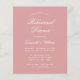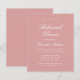 Een simpele uitnodiging voor een repetitief diner met een moderne kleur: stoffig roos. Het heeft alleen witte tekst op de achtergrond van stoffige rozen. De woorden "Dinner van de repetitie"en de naam worden geschreven in een elegant kalligrafisch manuscript.